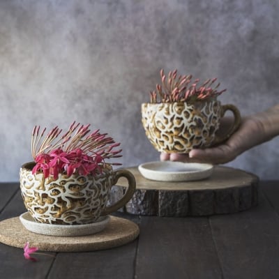 Garden Gleams Brown Cup Planter Pot Set of 2