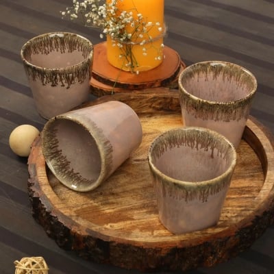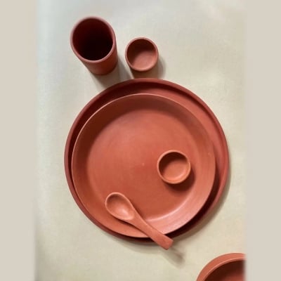Terracotta Dinner Set for 1 ( Dinner Plate, Salad Plate, Bowls, Glasses and Spoon)