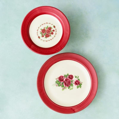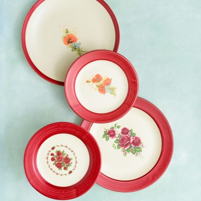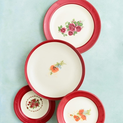 Floral Whispers in Red Wall Decor Ceramics Plate Sets