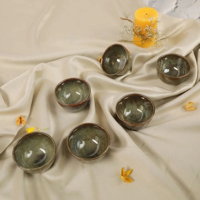 3.5" Handmade Navhara Round Pickle CeramicBowl Set of 6