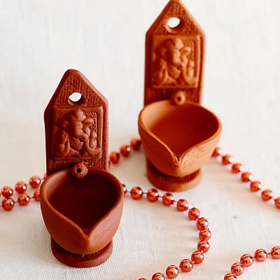 Handmade Terracotta Ganpati Diya Lamp Set of 2
