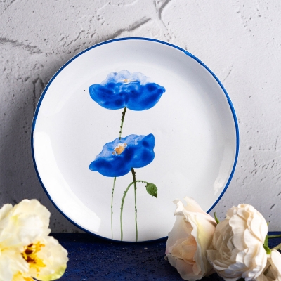 Blue Flowers Handpainted Wall Decor Ceramic Single Plate