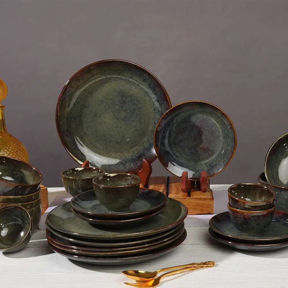 Handmade Terracotta Large Organic Dinner Plate, Bowl and Spoon Set